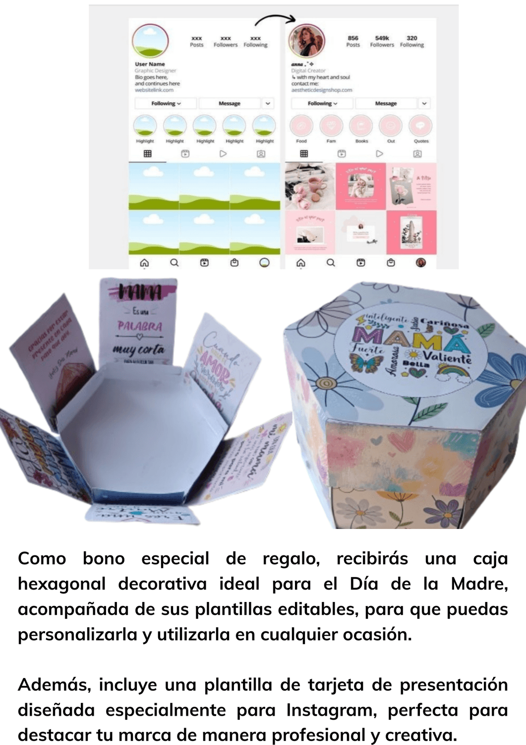Caja Hexagonal. Día de la Madre editable