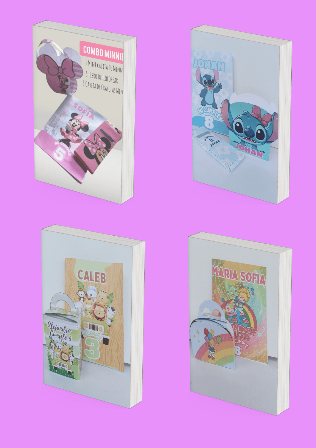 Descubre nuestros combos temáticos que Incluye Una bolsita, un Libro y una Cajita de Crayolas: ¡Stitch, Minnie, Masha y el oso, Bluey, Rainbow brite, Luca, Capibara, Safari, Avengers, Caramelo, Plim Plim, Kuromi, Mario Bross, Harry Poter, Encanto, Barbie, Cars, Spiderman, Frozen, Paw Patrol, Dinosaurio bebe, Moana, Fortnite, Winnie Pooh, Sirenita Ariel, Abejita, Blanca Nieves, Hello Kitty, Unicornio, Bob Esponja, Jurassic Parck, Labubus ya están disponibles! 🎁 Cada semana añadimos nuevos personajes para que puedas sorprender con diseños únicos, personalizados y llenos de magia. No te lo pierdas, porque lo que viene está increíble. ¡Haz que cada celebración sea inolvidable!